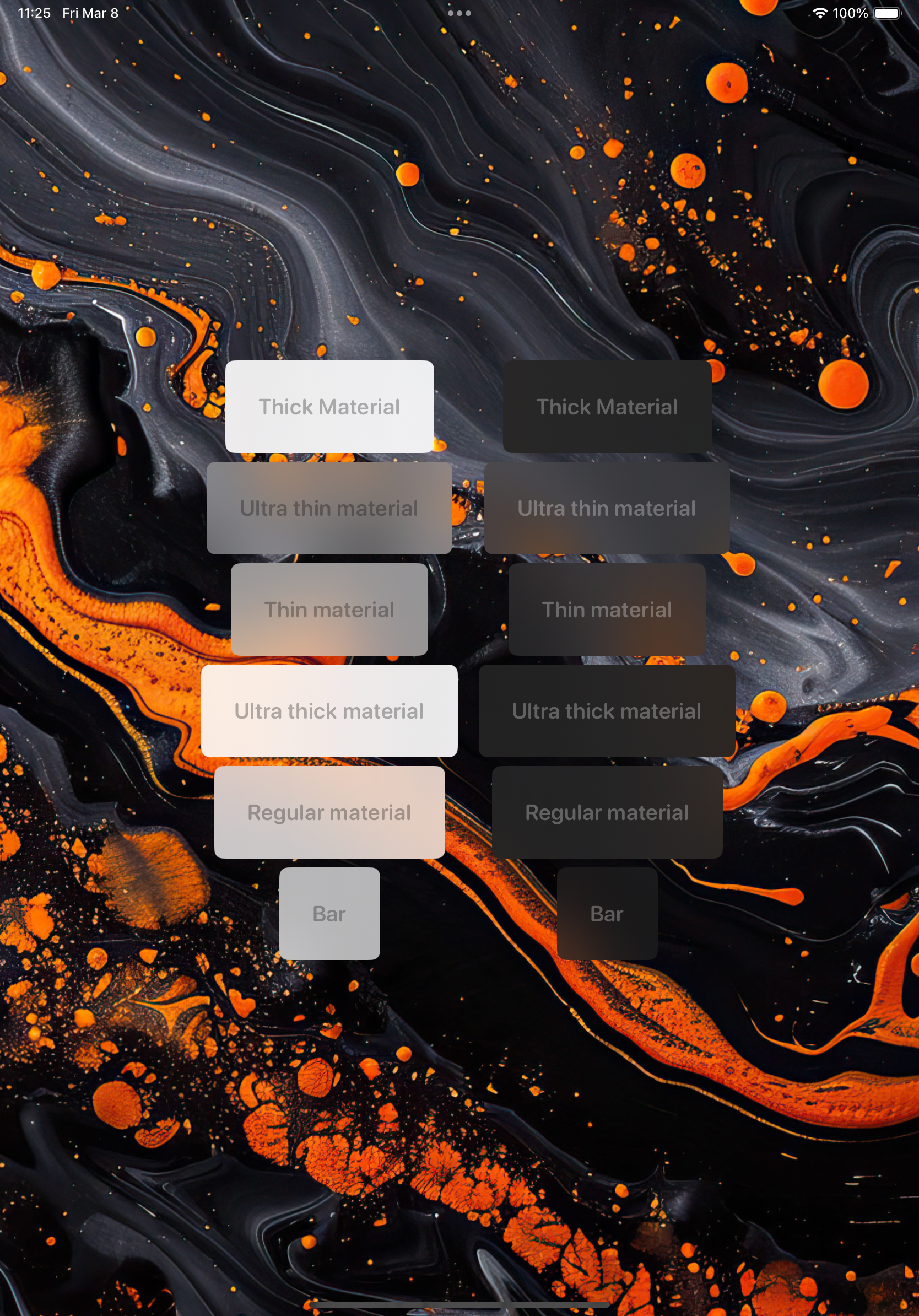 Here is a list of all the available materials in SwiftUI.